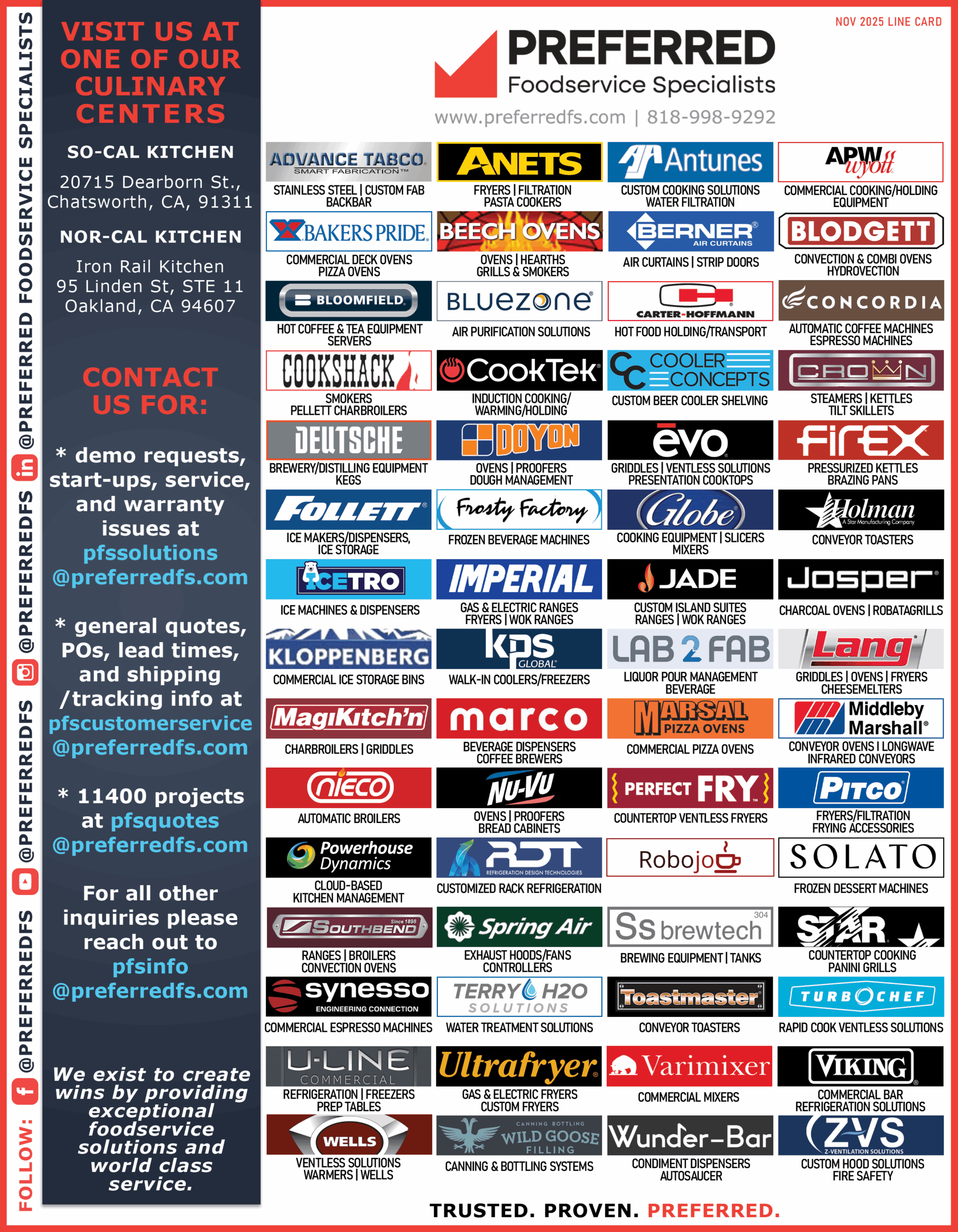 PFS exclusively partners with over 60 premium manufacturers who meet our stringent standards for quality, innovation, and performance. Our selective approach ensures you receive only the best solutions for your commercial kitchen.